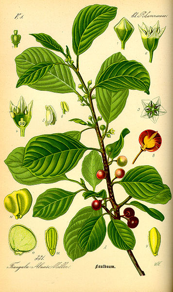 Kruszyna pospolita jest bogata w środki aktywne – zawiera ich do 3 procent, i są to rozmaite antrazwiązki.